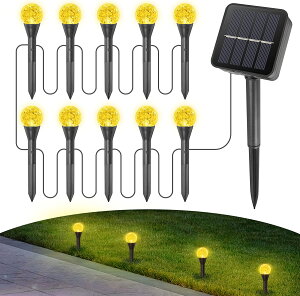 【10球屋外 防水ソーラーグランドライト】10球のLED埋込ライトを搭載しています。ロリポップのようミニLEDガーデンライトはとても可愛くてピカピカ光る、どこでも設置可能、庭園や小道、ポーチ、ベランダ、クリスマスツリーと盆栽などを