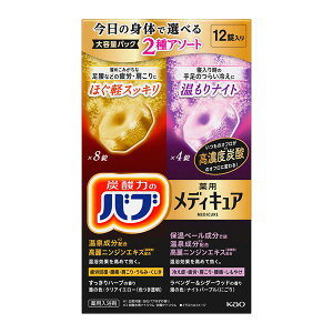 いつものオフロが高濃度※1炭酸のオフロに変わる!バブメディキュアの大容量アソートパック。今日の体で選べるレスキュータイプ2種12錠。※1メーカー比