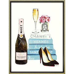 アメリカの女性作家アマンダグリーンウッドがライセンス契約の元、シャネルをメインにしたハイブランドをモチーフに丁寧に描いたキャンバスをゴールドをあしらったブラックフレームにセットアップ。カジュアルになったハイブランドア