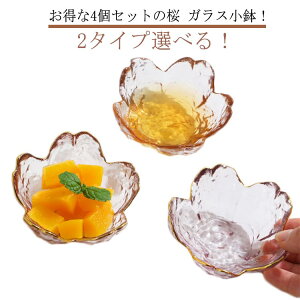 お得な4個セットの桜 ガラス小鉢!2タイプ選べる!薄ピンク色の透明で綺麗な色合いの桜モチーフの小皿シンプルデザインは、和洋問わず使えて便利内側はつるつるとしたタッチで外側は凹凸しており立体感があるおもてなしのデザートやス