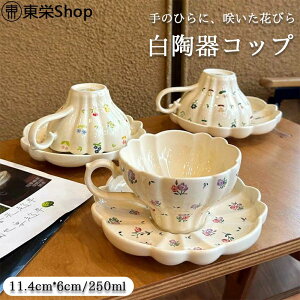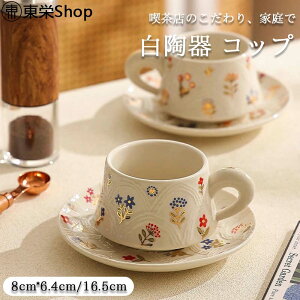 北欧 コーヒーカップ 美しい 花柄 マグカップ&プレート 280ml 白陶器 コップ カップ マグ ソーサー セット 洋食器 コーヒー 紅茶 レストラン 食器 皿 レトロ 和食器