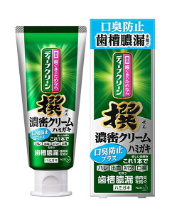 ディープクリーン撰濃密クリームハミガキ口臭防止プラス 95g【花王】 「ディープクリーン撰濃密クリームハミガキ口臭防止プラス 95g」は、ハレ・出血・ネバつき・口臭を伴う歯槽膿漏・歯肉炎を防ぐ濃密クリーム...