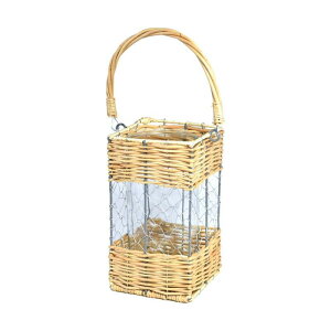 【サイズ】W10.5 D10.5 H21(cm)[その他サイズ]付属ガラス:φ10 H20(cm)[重量][入数][材質]再生ガラス、木、ラタン、鉄[規格][特徴]「ラタンのナチュラルな取っ手付きバスケット」と「再生ガラスのフラワーベ...