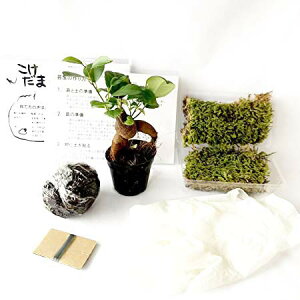 ガジュマル直径約9cmくらいのガジュマルの苔玉が作れるキットです。キット内容:ガジュマルの苗、苔(ハイゴケ)、用土(ケト土、富士砂、くん炭、肥料)、糸(テグス)、手袋、育て方のしおり、作り方の
