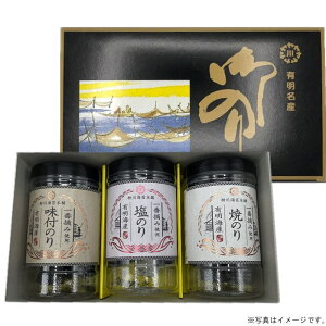 (商品名) こだわり味海苔詰合せ ー商品詳細ー 有明海産の風味豊かな味付海苔としじみ醤油味、 かき醤油で仕上げた味付海苔の3種類の味わいを楽しめるバラエティギフトです。 (セット内容) 有明海産味付のり(しじみ醤油味・かき醤油味)