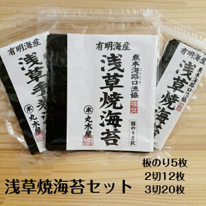 希少品種「アサクサノリ種」を使用した浅草焼海苔です。板のり、2切、3切と3種類のサイズを詰め合せたお得なセット内容となっております。