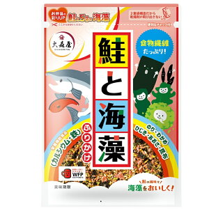 お子様が好きな鮭と海藻を合わせたふりかけ 栄養価の高い5種類の海藻入り(のり・わかめ・ひじき・あおさ・昆布) 栄養機能食品(カルシウム・鉄) 食物繊維もたっぷり!! 紙包材を使用しています!! 乾燥剤が仕切られている二重袋!