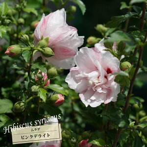 【ムクゲ/桃八重】読み:むくげももやえ学名:Hibiscus syriacus. Lアオイ科フヨウ属落葉低木【商品情報】ムクゲは花が綺麗な品種です。朝開いた花は夕方には枯れてしまいます。しかし次々と咲くため...
