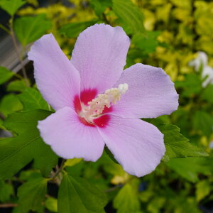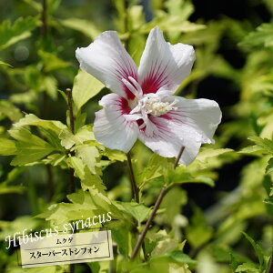 【ムクゲ】(木槿)読み:むくげ学名:Hibiscus syriacus. Lアオイ科フヨウ属落葉低木【商品情報】ムクゲは花が綺麗な品種です。朝開いた花は夕方には枯れてしまいます。しかし次々と咲くため、...