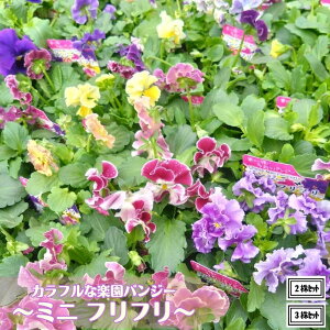 フリル咲き ビオラ ぞうさんビオラ ブルーミックス 3.5号ポット苗 寄せ植え 花壇 鉢植え お洒落 オシャレ 冬の花 花 くるっとカールの、ぞうさんビオラは花粉が出ない新開発品種です♪ タネが付かないので...