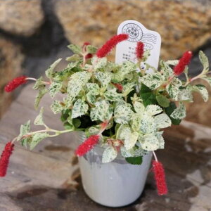 斑入り キャットテール 2.5〜3号ポット苗 寄せ植え 花壇 まだまだ流通量の少ない、珍しい斑入り葉のキャットテールです♪ ネコのしっぽのような、もこもことした真っ赤なお花をつけます。 カラーリーフとして一年を通して使えますので...