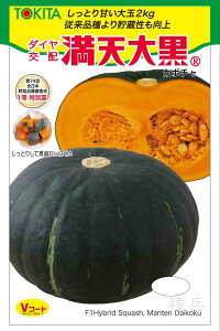 ※この種1mlあたり粒数の目安…1.8〜2.5粒重量感のある黒皮の高品質カボチャ【特長】●でんぶん含量多く、貯蔵による粉質の低下が遅い黒皮洋種カボチャ。●果実は扁平形で1.8〜 2.4kgの大果となり収量性が高い。●果皮は黒緑色でちらし斑は