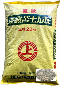 撒きやすい粒状の苦土石灰。土壌改良効果が持続します。【名称】粒状苦土石灰 【サイズ】600×420×40mm 【容量】20kg 【原産国】日本