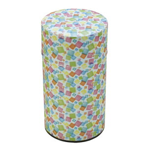 お茶缶にモダンな市松柄のカラー紙を貼って仕上げた容器お茶缶にモダンな市松柄のカラー紙を貼って仕上げた容器です。お茶の葉はもちろん、紅茶、クッキー、キャンディー、海苔、あられなどの保管にもぴったり。☆和洋どちらにもマッ