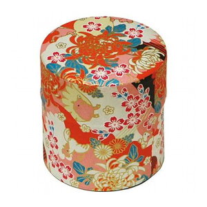 お茶缶に「紙ごと」のティーマット柄の和紙を貼って仕上げたかわいい容器特長お茶缶に「紙ごと」のティーマット柄の和紙を貼って仕上げたかわいい容器です。お茶の葉はもちろん、クッキー、キャンディー、海苔、あられなどの保管にも