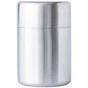 ステンレス製のシンプルな茶筒です。内蓋付きで密閉力が高く湿気を防ぎお茶の風味を長持ちさせます。遮光性が高いので茶葉だけでなくコーヒー豆の保管にもおすすめです。フタが大きく茶葉をすくいやすく、デザイン性だけでなく機能性