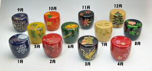 [茶道具・御稽古物・新物・茶入・薄茶器・棗]手描き蒔絵 木質中棗 (12ヶ月 各月 単品販売)紙箱入り※各月 単品による販売となりますので、種類をお選びください。
