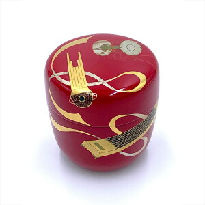 .......... 春の訪れを感じさせる繊細な美しさを持つ逸品です。この中棗は、鮮やかな朱塗りの背景に、愛らしい立雛の蒔絵が施されており、その上品なデザインはどんな茶室にも映えることでしょう。胴部分には桃の