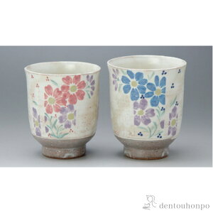 仕様 <セット内容> カップ×2 <サイズ> (約)Φ8.5×9.5cm(300cc) <材質> 陶器(美濃焼・桂山窯・手造り) ※食洗機OK ※陶器の特性上、色味や柄・形には多少の違いがございます。 ※木箱入り ※日本製