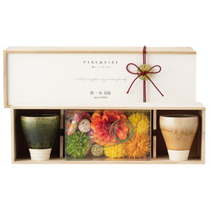 ●カップサイズ/φ 80× 96mm(250ml)×2 ●木箱サイズ/124× 408×107mm ●アーティフィシャルフラワーBOX/105×185× 93mm ●材質/木製、紙製(蓋)、PET ●お二人のお名前(日本語表記)・記念...