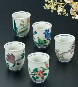 九谷焼 湯呑み 5客 セットです。■お取り扱い方法 【電子レンジ不可】 電子レンジではご使用頂けません。 【食器洗浄機】 絵柄の美しさ保持の為、食器洗浄機はご遠慮下さい。