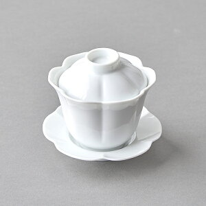 蓋付きカップとソーサーのセットです。花の形をあしらった食器は、食卓が華やぐアイテム。ティーカップや湯呑として、紅茶や緑茶など楽しむのはもちろん、プリンや茶碗蒸し用の器
