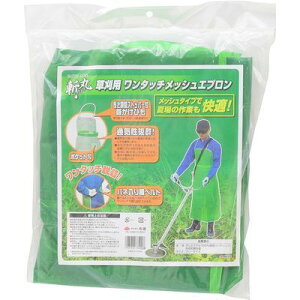 製品仕様 ■サイズ :フリー ■材質 :ポリエステル ■特徴 実用的な男性用草刈りエプロン 草汁の付着防止のはっ水加工 通気性アップのため背面はメッシュ構造 長靴を履いたままでも着用可能です 物が落ちにくい深型ポケットは大変便利