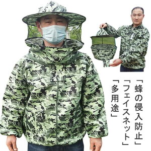 ミツバチ服 養蜂用 防護服 上着式 帽子つき フェイスネット 防虫