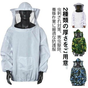 2種類の厚さをご用意虫刺され対策、害虫駆除、養蜂作業に最適な防護服着心地の良い、柔らかで通気性のある、優れた布を採用します上半身丸ごとかぶるので、養蜂やガーデニングの作業など虫刺されるのに効果的に外での作業もお助けアイ