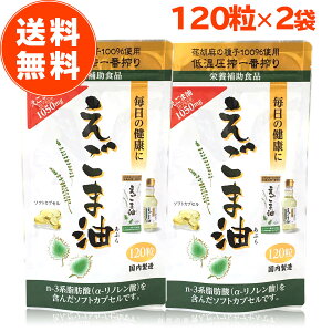 名称:えごま油加工品。原材料:荏胡麻油(国内産荏胡麻) 魚性ゼラチン 植物性グリセリン。内容量:54g(450mg×120粒)。