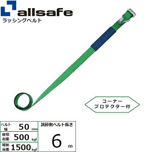 【仕様】 ●最大使用荷重(t):1 ●ベルト長さ(m)巻取側:5 ●ベルト長さ(m)固定側:1 ●ベルト寸法(mm)幅×厚さ:50×2.0 ●色:グリーン ●コーナープロテクター付 ●バックルシート付<br