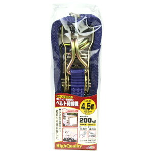 【用途】 荷物の固定。 【特徴】 ラチェット式で強く確実に荷締めが出来ます。 耐久性に優れたポリエステルベルトを使用しています。 エンドレスタイプで荷物の束ね締め用です。 【仕様】 ●ベルト幅:25mm。 ●ベルト長:巻取4.5m。 ●使