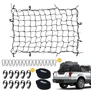 カーゴネット 車 キャリアネット 180×120cm ラゲッジネット ルーフキャリア ネット 荷締めベルト(3m×2本) カラビナ×16 ABSフック付き×12 荷物落下防止 キャンプ用品 荷台用 軽バン用 (180×120cm)ブラ...