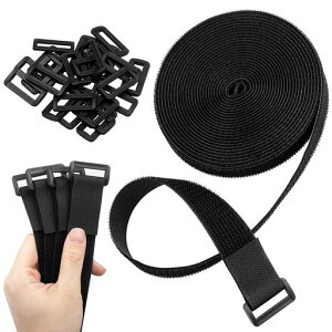 【送料無料】マジック結束バンド 荷締めベルト ベルクロ 面ファスナー固定ベルト 長さ5m*幅2.5cm 25個バックル付き 結束テープ 強力 耐熱 自由にカット 繰り返し DIY用 荷物梱包 配線整理 収納用テープ (2.5cmx5m...