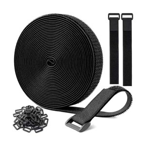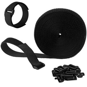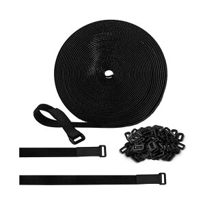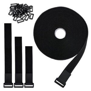 【送料無料】結束バンド 荷締めベルト 面ファスナー 結束テープ 固定ベルト - 長さ6m*幅3cm 25個バックル付き 結束バンド 自由にカット 強力 耐熱 繰り返し DIY用 配線整理 収納用テープ (3cmx6m)ブランド色ブラッ...
