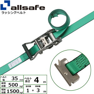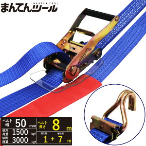 ベルト幅:50mm ベルト全長:3.2m ・ベルト固定側:0.5m ベルト巻取側:2.7m 最大使用荷重:750kg 破断荷重:1500kg 端末仕様:両側Jフック ・フック間最小距離:0.7m フック間最大距離:3.2m 材質 ・ベ...