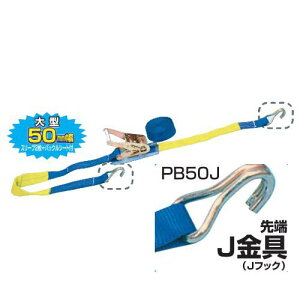 ※商品画像は代表的なものを使用しています ■特徴 〇大型50mm幅。スリーブ2枚+バックルシート付き 〇型式:PB50J 〇固定側ベルト長さ:1m/調整側ベルト長さ:5m 〇先端:J金具 〇使用荷重:500Kg 〇破断荷重:3,000...