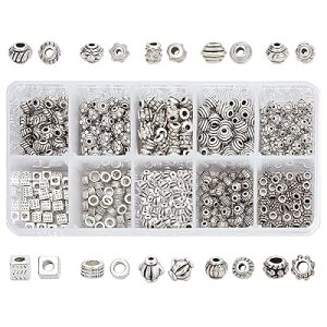 約500個 10種 合金 スペーサービーズ 菊座 花座 座金 メタルビーズ チャーム チベット風 ジュエリー製作 アクセサリーパーツ DIY用 クラフト 手作り素材 アンティークシルバーブランド色銀古...