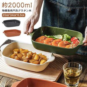 陶器製楕円形グラタン皿。【約2000ml】【20cm*34cm*6.5cm】取っ手がついているので持ちやすく、オーブンへの出し入れもスムーズにできます。程よく深さがあるので、ボリュームのあるグラタン料理などにおすすめ...