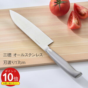 肉も魚も野菜も。三徳包丁は、家庭での調理の“基本の一本”として親しまれている万能タイプです。切る・刻む・薄くスライスするなど、毎日の調理に使いやすい一本です。■継ぎ目のないオールステンレス製熱湯消毒も可能で、清潔に保