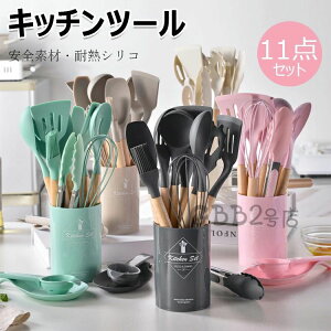 【商品コード】:y813622 【カラー】 ホワイト、ピンク、ベージュ、ダークグレー、ライトグリーン 素材:シリコン、木 原産国 : 中国 【この商品について】 セット内容:キッチンツール11セット+収納容器 人体に有害...