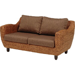 厚みとボリュームがあり、丁寧に編み上げられたウォーターヒヤシンス素材の魅力を ブラウン (約)幅174×奥行77×高さ73×座面高38cm ■ 座面:ウェービングベルト使用 主材:ウォーターヒヤシンス、天然木、ウェービングベルト ク
