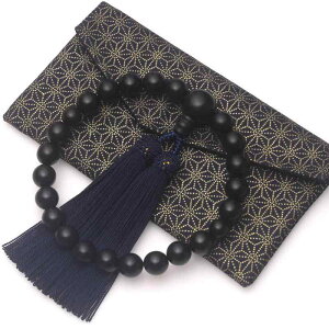 こちらの数珠の特徴主玉黒オニキス 22玉・12mm仕立(親玉・飾り)黒オニキス房正絹頭房 黒色備考各宗派向男性用数珠 桐箱入店長のおすすめ度●●●○○珠玉のきれいさ●●●●○親玉のきれいさ●●●●○仕立ての良さ...