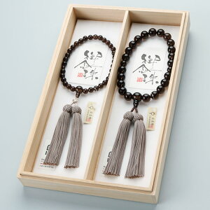 コメント すべての宗派のお客様にお使い頂ける略式数珠のペアセットでございます。素材は、男女ともに人気の茶水晶(ちゃすいしょう)でございます。今回、男性用と女性用の房色を同じお色目でご準備させて頂き、ペアセットにさせて頂