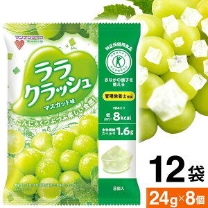 特定保健用食品のララクラッシュ!! クラッシュしたこんにゃくのつぶつぶと、ジューシーなジュレが楽しい2つの食感。 1個(24g)あたりに食物繊維1.6g、カロリーはたったの8kcal。 マスカットの爽やかな甘さを表現しました。 【1袋...