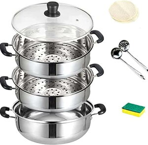 【材質】蒸し器セットには、断熱性と熱傷防止、滑り止め、安全なハンドルが特徴で。本体/ステンレス鋼、取っ手/フェノール樹脂(耐熱温度150度)、ガラス蓋/強化ガラス(全面物理強化)、蓋金属部/ステンレス鋼...