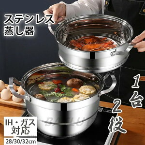 商品説明 商品内容 蒸し器 三段 30cm 大容量 IH対応 ガス火対応 蒸し鍋 三段蒸し器 28センチ 両手鍋 3段蒸し器 ガラス蓋付き ステンレス鍋 蒸籠 調理鍋 オール熱源対応 2層/ 3層選択可能...