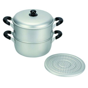 アルミ製なので熱効率に優れ、軽くて扱いやすいアルミ2段蒸し器です。表面は薄いアルマイト被膜を作る処理(アルマイト加工)を施してあるので酸化・腐食しにくく、光沢も長持ち。上下鍋を組み合わせて蒸し料理に、下鍋だけでゆで物や煮
