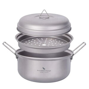 Boundless Voyage チタン鍋 ポット 1.8リットル 両手鍋 蒸し鍋 クッカーセット 蒸し器 アウトドア キャンプ 調理器具 蒸し目皿 蓋付 軽量 キャンプクッカー 400g Ti205...