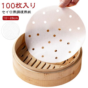 【100枚入り】【セイロ用調理用紙】【10〜28cm】表面は疎油層が分布しているので、食べ物を簡単に取り外すことができ、粘着することができない。表面には穴が均一に分布しているので、蒸気を均一に通過させ...